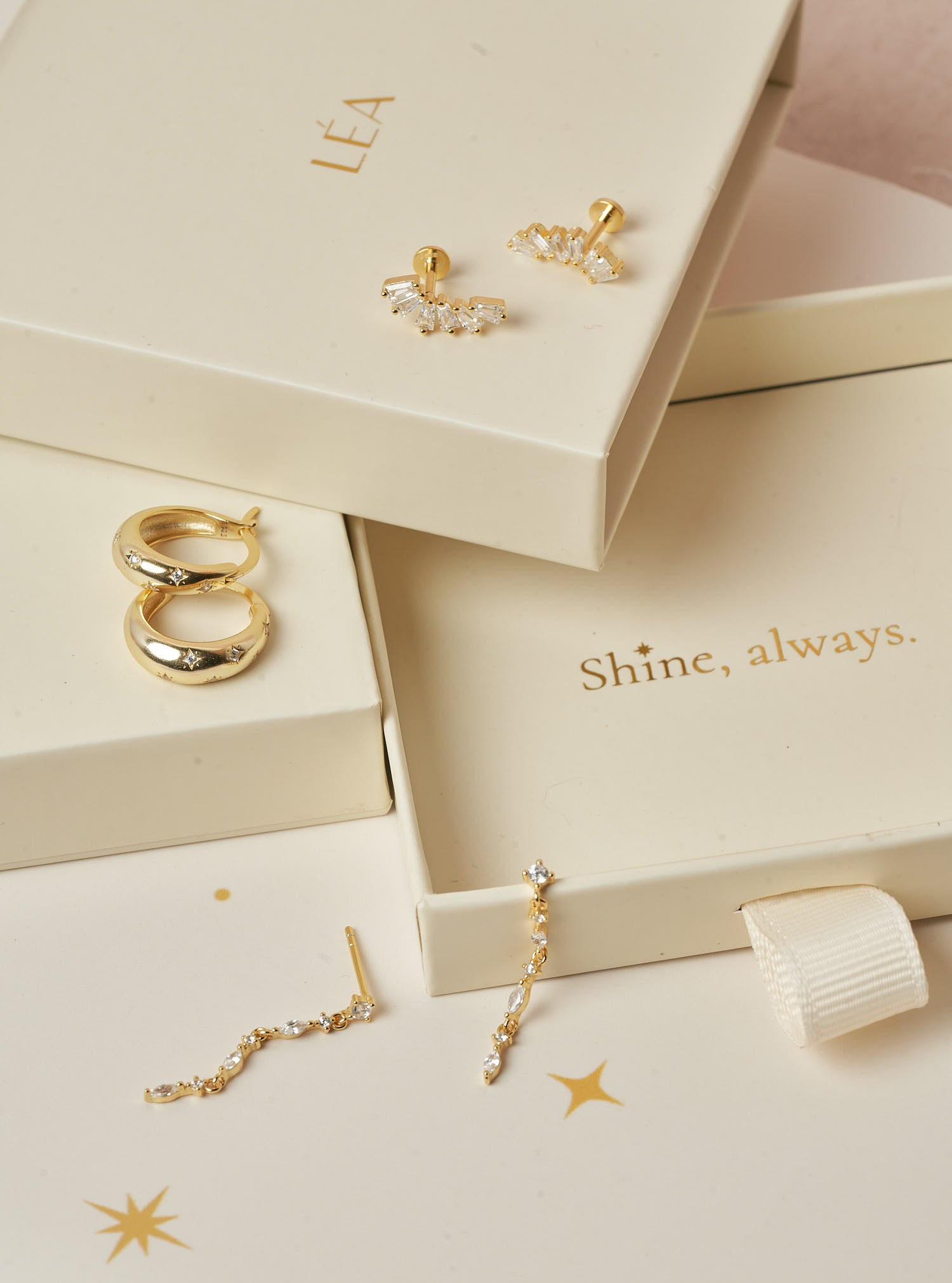 LÉA Jewels is made for everyday life – and real, sensitive ears. Every piece is crafted from 925 sterling silver with 18K gold plating, always hypoallergenic and nickel-free. You’re paying for precious metals and sleep-friendly comfort, not throwaway fashion – earrings designed to stay in your piercings and keep their shine, wear after wear.