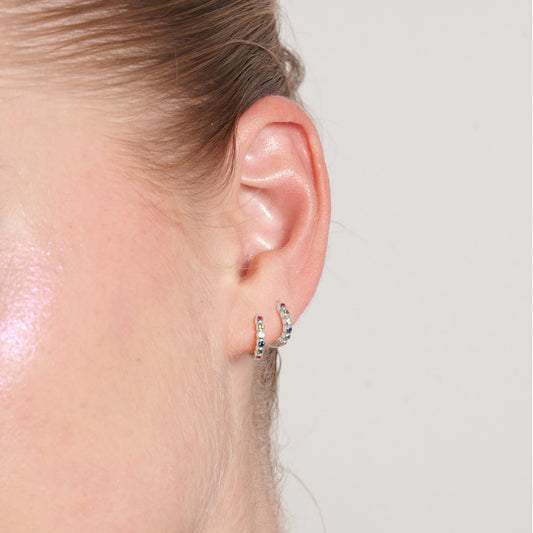 Rainbow Bezel Huggies In Silver