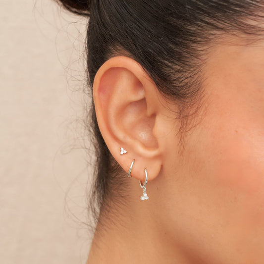 Solitaire & Trio CZ Flat Back Stud Set In Silver