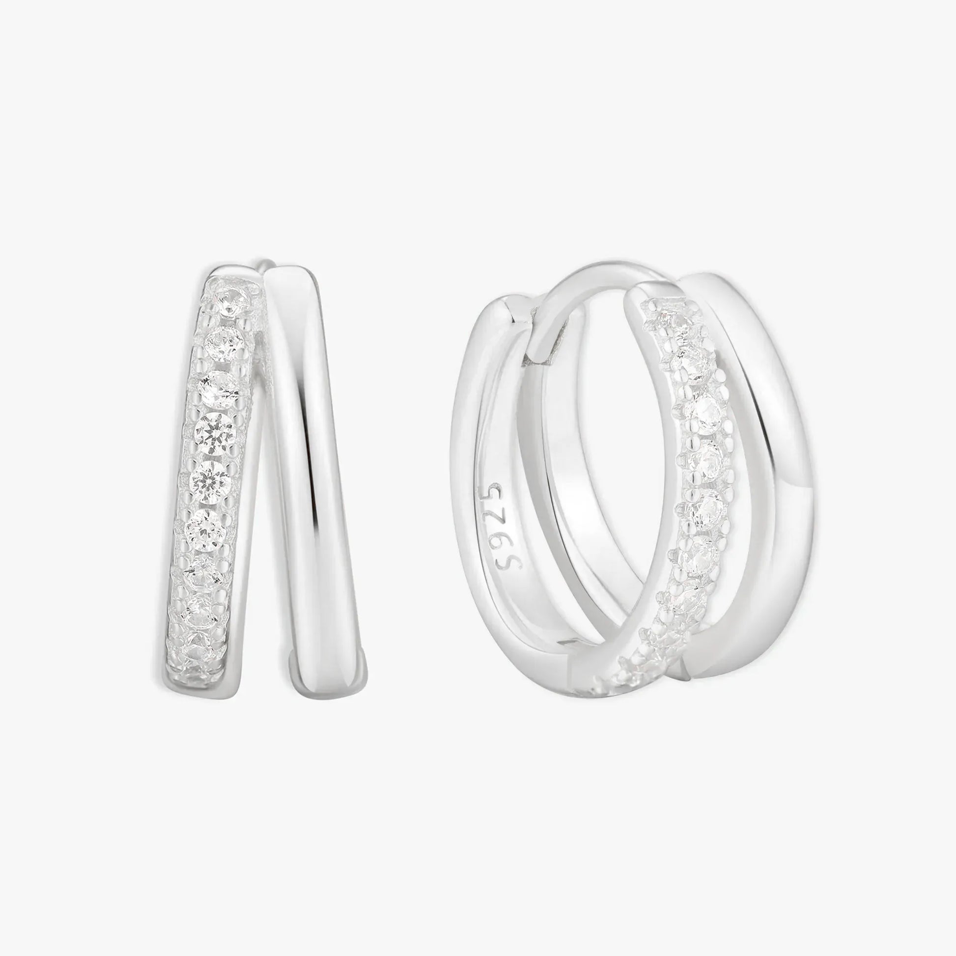 Crystal Double Hoop Huggies In Silver
