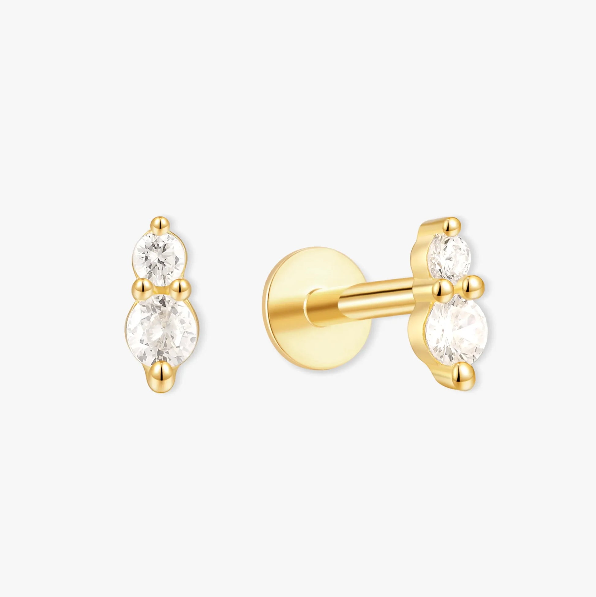 Elevate your everyday look with our Duo Crystal Flat Back Studs in gold. Featuring two cubic zirconia stones in a sleek vertical setting. The flat back design ensures all-day comfort and a secure fit, making it perfect for lobe, helix, or tragus piercings. A refined essential for your ear stack.