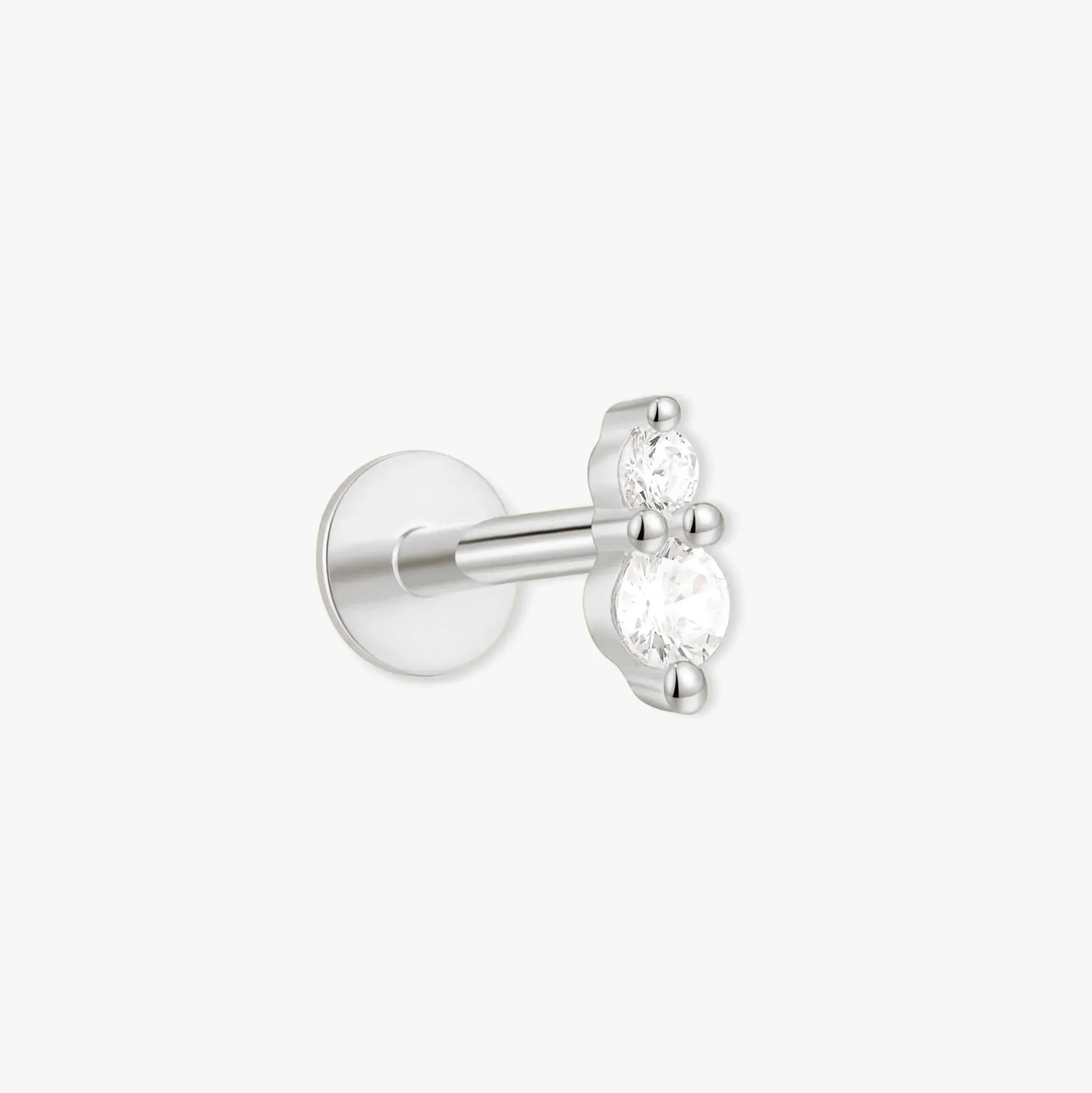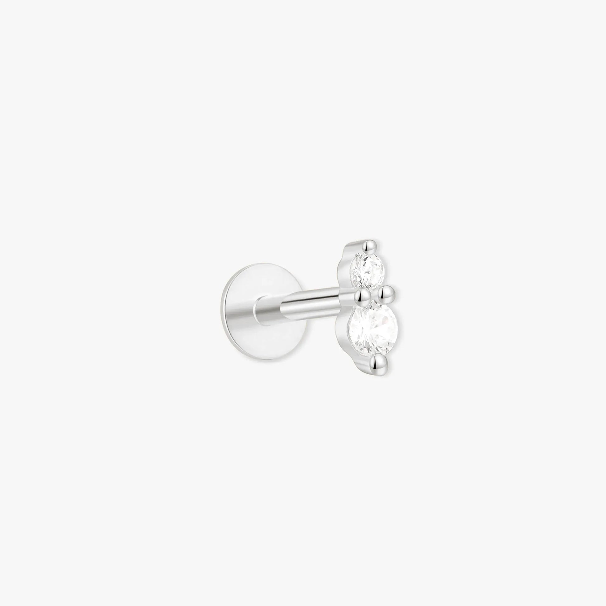 Elevate your everyday look with our Duo Crystal Flat Back Stud in silver. Featuring two cubic zirconia stones in a sleek vertical setting, this single stud is designed for all-day comfort with its flat back, making it perfect for helix, tragus, or conch piercings. A refined essential to add subtle sparkle to your ear stack.