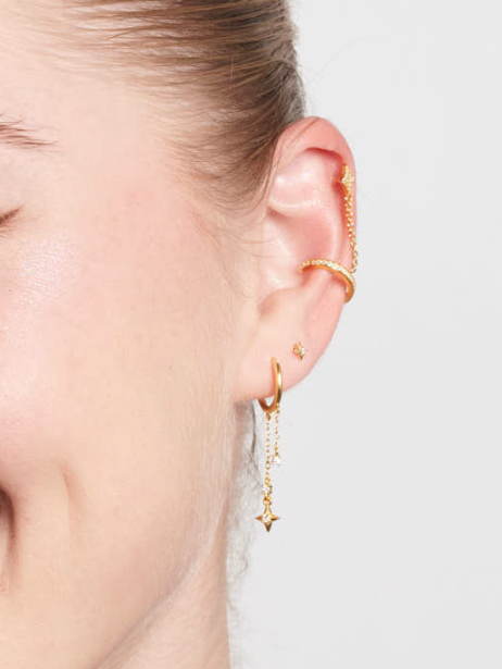 These petite gold helix hoops are perfect for subtle, elegant accents. Specifically designed for cartilage or helix piercings, their delicate size and smooth, minimalist finish add a touch of sophistication to any look. Crafted from 18k gold plating, they are lightweight, comfortable, and ideal for all-day wear.