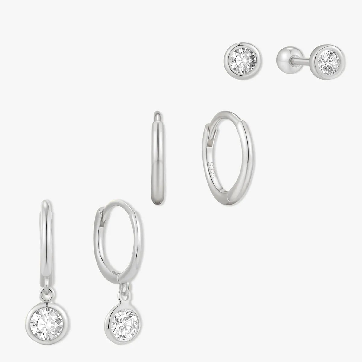 Everyday Bezel Trio Earrings Set in Silver