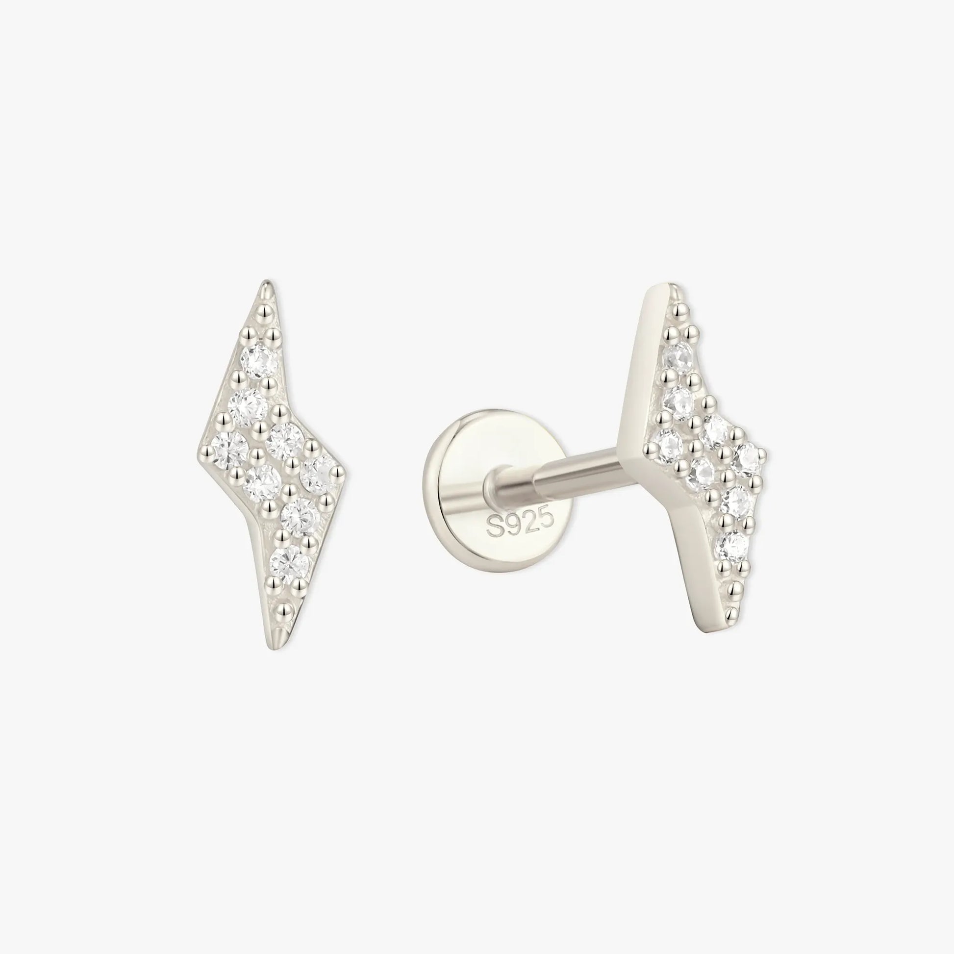 Strike the perfect balance between bold and minimal with our Lightning Bolt Flat Back Stud in Silver. This sleek stud features a shimmering crystal-set lightning bolt — designed to add edge and sparkle to your ear stack. The flat back ensures all-day comfort, making it perfect for sleeping, layering, or everyday wear. A striking detail for helix, tragus, or lobe piercings.