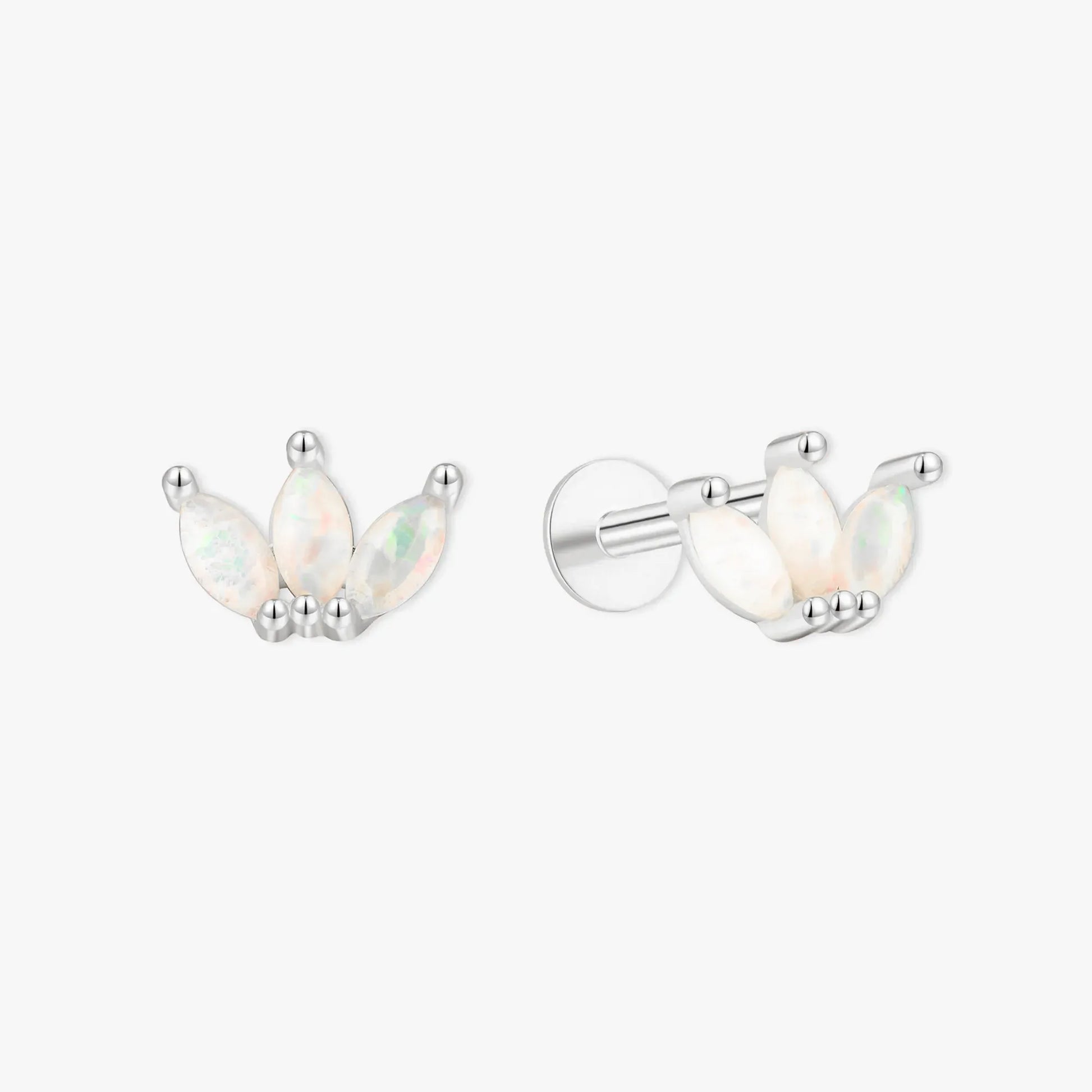 Opal Marquise Cluster Flat Back Studs in Silver