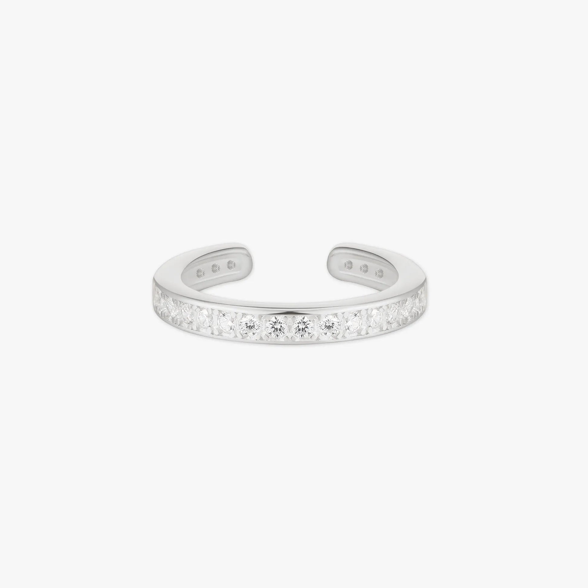 This minimalist ear cuff combines elegance and versatility with a polished design that complements any style. A delicate row of cubic zirconia adds subtle sparkle, making it perfect for casual and formal occasions. Its lightweight, adjustable structure ensures easy wear without the need for piercings.