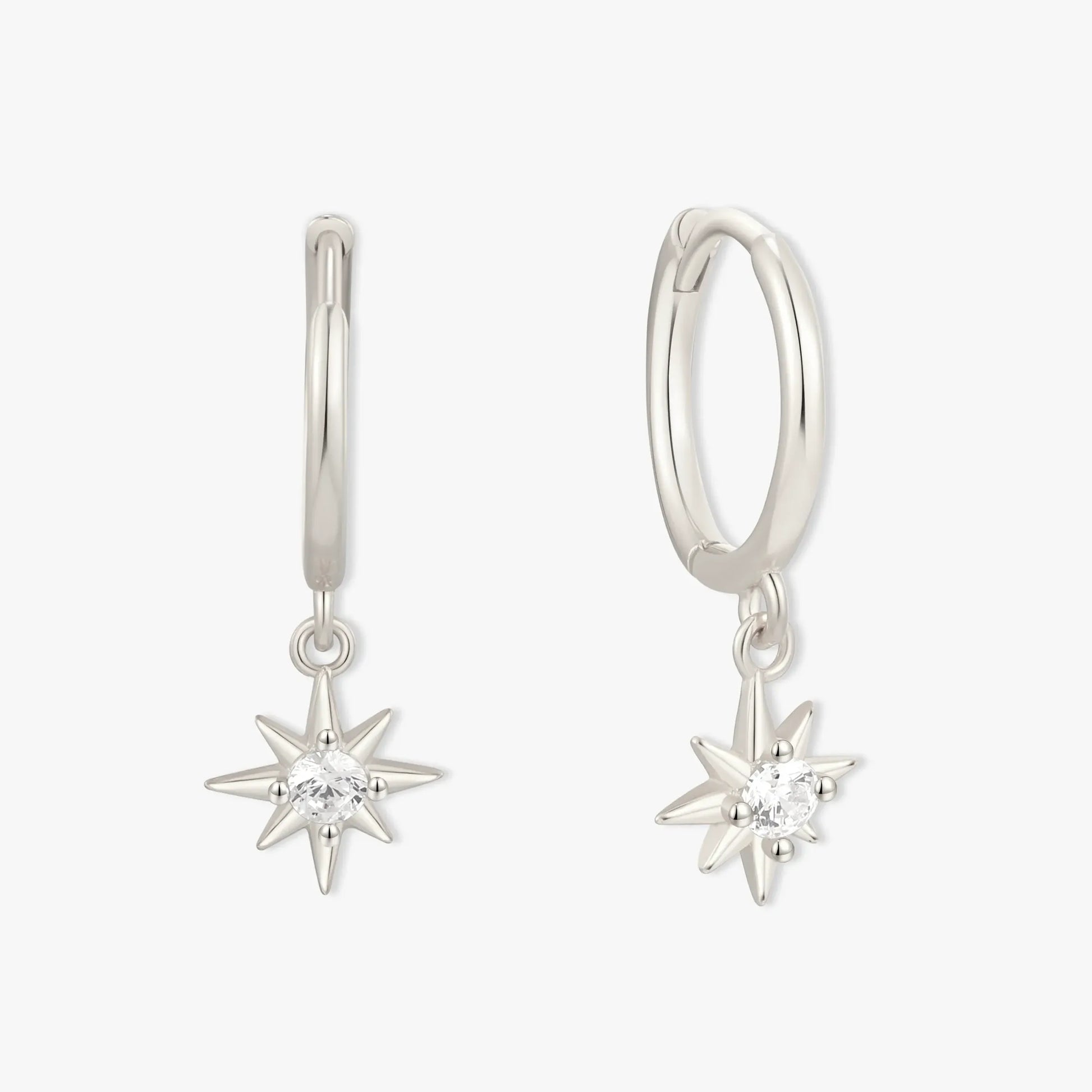 These starburst hoop earrings feature a radiant charm that dangles gracefully, adding celestial elegance to your style. The dainty starburst design, with its sparkling cubic zirconia centrepiece, exudes a timeless charm that beautifully complements the smooth, polished hoops.