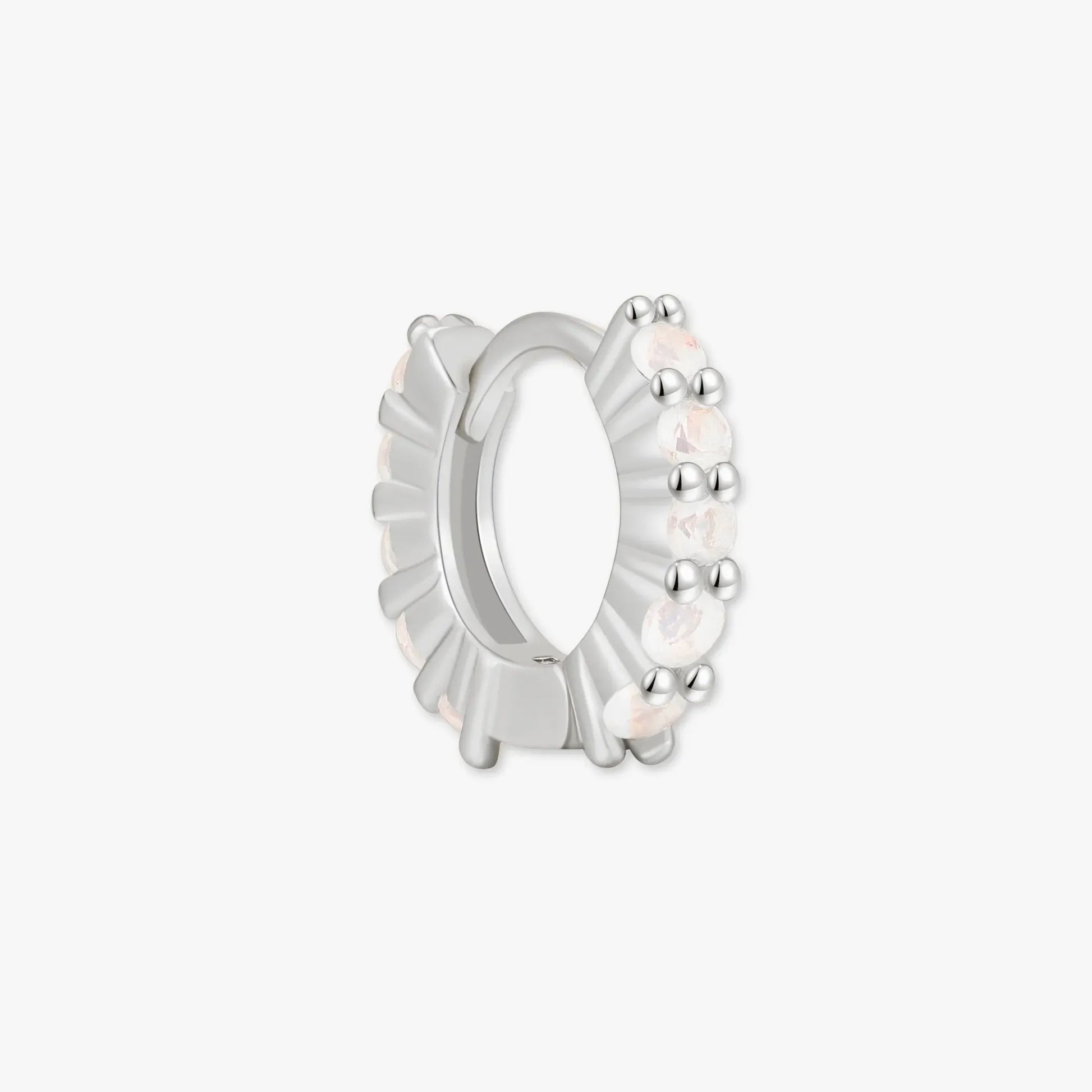 Our Silver Opal Huggie Hoops feature delicate opal stones that shimmer with soft iridescent hues. Set in a textured silver frame, these hoops bring a touch of dreamy elegance to your everyday style. Perfect for adding subtle sparkle to any look.